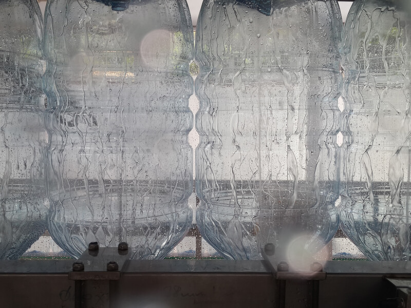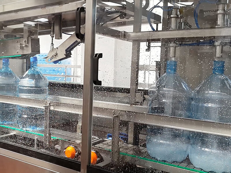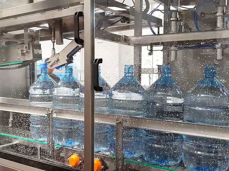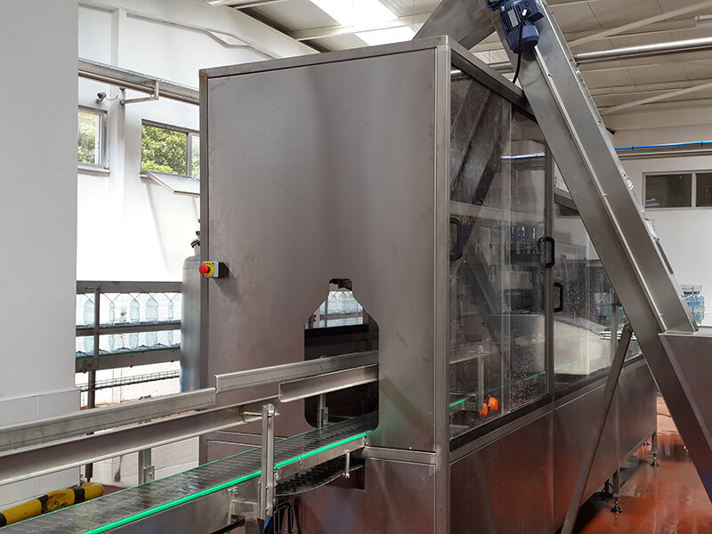 a) Çalkalama Unitesi; Bu sistemde şişeler gripper vasıtası ile 180° baş aşağı çevrilip içine ürün suyu püskürtülerek çalkalama işlemi gerçekleştirilir. Bu pozisyonda su kesilir, süzülme süresinden sonra şişeler yine gripper vasıtası ile ilk konumuna tekrar geri getirilir.