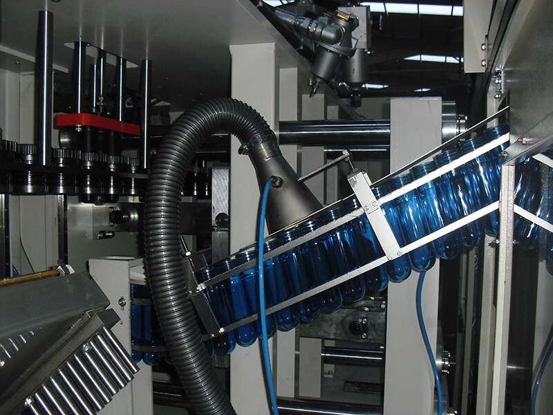 Şişirme işleminden sonra şişeler servo motorlarla hareketlendirilmiş sistem ile kalıptan dışarı çıkarılarak direkt havalı konveyör, bant veya doğrudan çıkışa verilir.